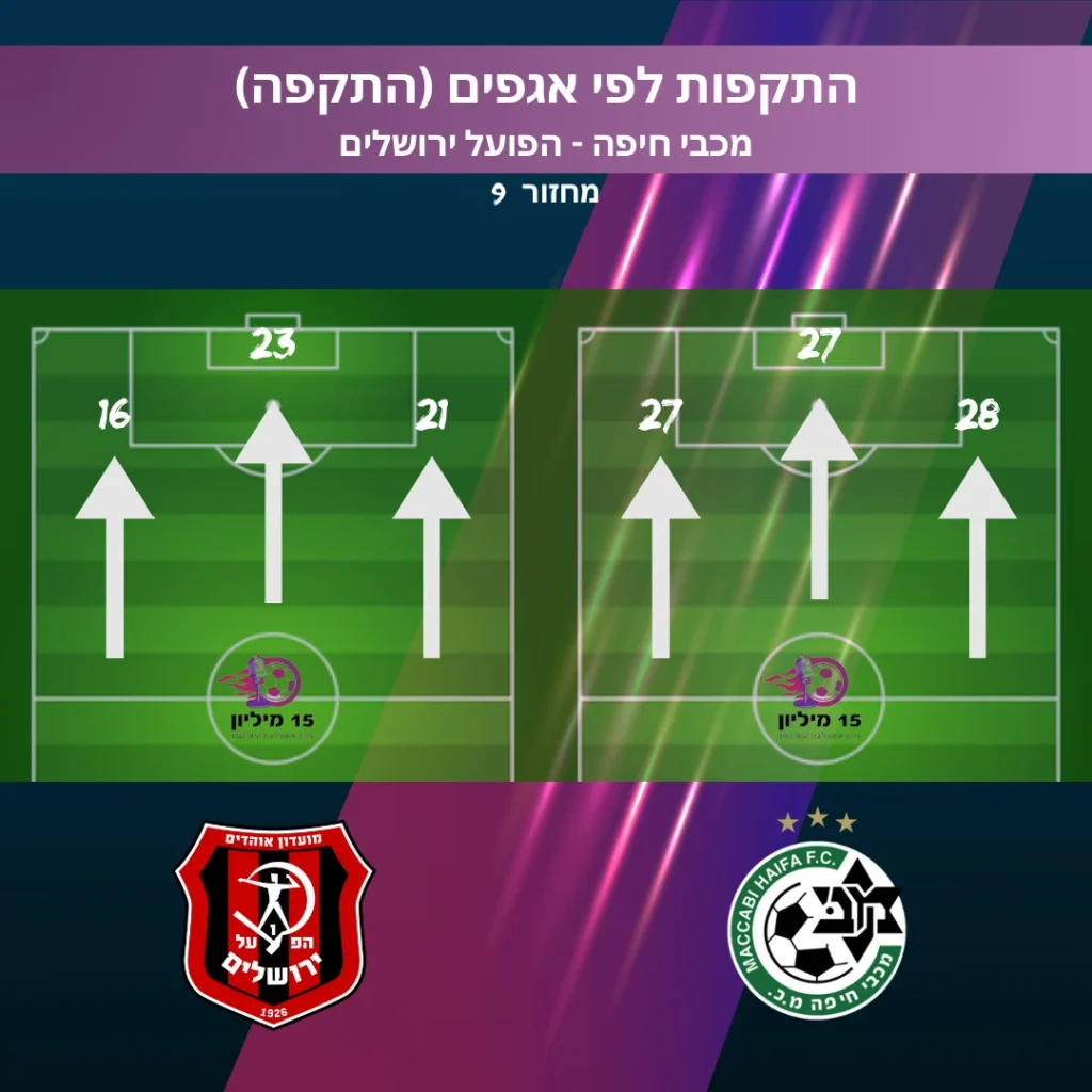 רק הפועל ב"ש תוקפת מהמרכז יותר מהפועל חיפה, שיצרה כבר 38 בעיטות לשער מאגף זה. אם שוב נראה שער של אופק ביטון או שאיסט סוף סוף ישבור את הבצורת?